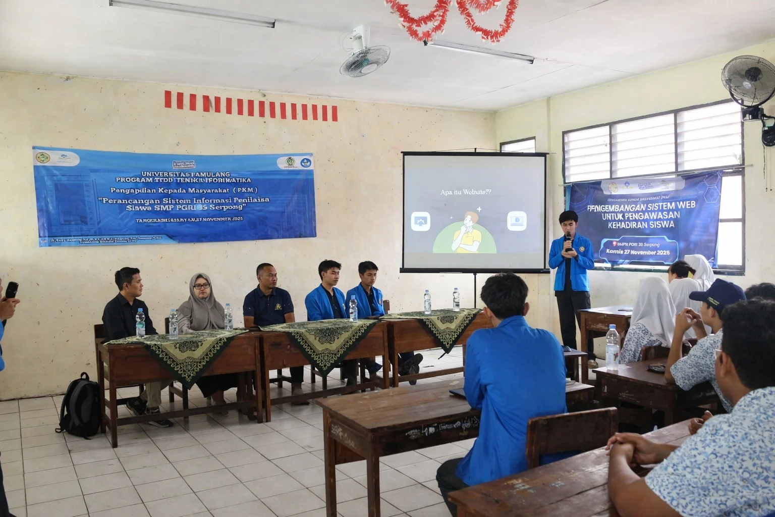 Tangerang Selatan, November 2025 — Universitas Pamulang melalui Program Studi Teknik Informatika Universitas Pamulang kembali menunjukkan kontribusi kepada masyarakat melalui kegiatan Pengabdian kepada Masyarakat (PkM) tahun akademik 2025/2026. Dalam program ini, tim mahasiswa mengembangkan sistem web untuk pengawasan kehadiran siswa di SMP PGRI 35 Serpong, Kota Tangerang Selatan, sebagai langkah mempercepat digitalisasi administrasi sekolah.