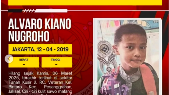 Jakarta, Indonesia – Misteri hilangnya Alvaro Kiano Nugroho, bocah berusia 6 tahun dari Pesanggrahan, Jakarta Selatan, akhirnya terkuak setelah delapan bulan pencarian. Polisi menemukan kerangka manusia yang diduga kuat sebagai Alvaro, mengungkap fakta tragis bahwa ia menjadi korban penculikan dan pembunuhan oleh ayah tirinya sendiri.